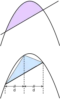 During the Hellenistic period, this method was further developed by Archimedes (c. 287 – c. 212 BC), who combined it with a concept of the indivisibles—a precursor to infinitesimals—allowing him to solve several problems now treated by integral calculus. In The Method of Mechanical Theorems he describes, for example, calculating the center of gravity of a solid hemisphere, the center of gravity of a frustum of a circular paraboloid, and the area of a region bounded by a parabola and one of its secant lines.[11]