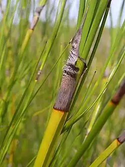 Caustis pentandra, known as the thick twist rush is a widely distributed grass like plant found in many parts of Australia. It may grow to 2 metres tall, often seen in dry open forest, or moist heathland.[1] Stems are a shiny pale green. The specific epithet pentandra is derived from the ancient Greek language, referring to five stamens.[2] This species first appeared in scientific literature in the year 1810, in the Prodromus Florae Novae Hollandiae, authored by the prolific Scottish botanist Robert Brown.