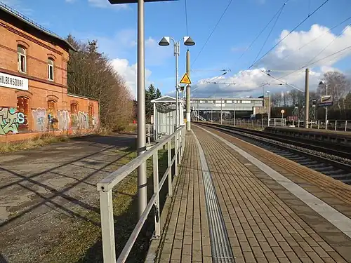 Chemnitz-Hilbersdorf is the name of a former freight yard and a halt on the Dresden–Werdau railway in the city of Chemnitz in the German state of Saxony. The halt is today served by Regionalbahn services on the Dresden–Zwickau route (RB 30) as well as by local trains of City-Bahn Chemnitz to Hainichen and central Chemnitz (C15). Both lines run hourly, together they offer a service approximately every 30 minutes in each direction.