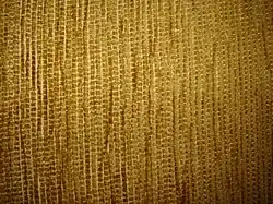 Alexander Buchanan, a foreman in a Paisley fabric mill, is credited with introducing chenille fabric to Scotland in the 1830s. Here he developed a way to weave fuzzy shawls. Tufts of coloured wool were woven together into a blanket that was then cut into strips. They were treated by heating rollers in order to create the frizz. This resulted in a very soft, fuzzy fabric named chenille. Another Paisley shawl manufacturer went on to further develop the technique. James Templeton and William Quiglay worked to refine this process while working on imitation oriental rugs.[1] The intricate patterns used to be difficult to reproduce by automation, but this technique solved that issue. These men patented the process but Quiglay soon sold out his interest. Templeton then went on to open a successful carpet company (James Templeton & Co) that became a leading carpet manufacturer throughout the 19th and 20th centuries.