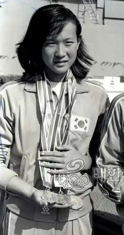 - ^ 제10회 아시아드 崔允喜수영첫金 [Choi Yun-hui wins first gold at 10th Asiad]. Maeil Business Newspaper. 24 September 1986. p. 1. Retrieved 5 December 2017 – via Naver News.