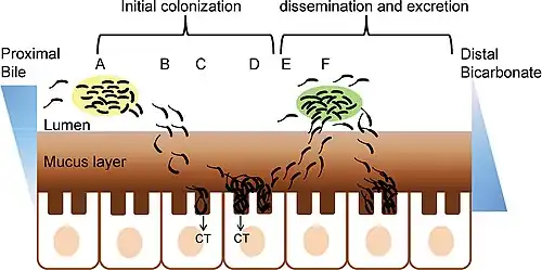 130. ^ Merrell DS, Butler SM, Qadri F, Dolganov NA, Alam A, Cohen MB, et al. (June 2002). "Host-induced epidemic spread of the cholera bacterium". Nature. 417 (6889): 642–5. Bibcode:2002Natur.417..642M. doi:10.1038/nature00778. PMC 2776822. PMID 12050664.