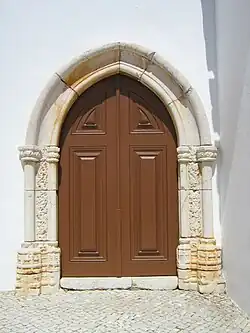 The earlier church was badly damaged in the 1755 earthquake during which the bell tower collapsed.[5] The Manueline doorway survived,[4][6] as did the tiling in the chancel end. Reconstruction took a number of years since various of alterations were introduced,[4] including the replacement of the original interior columns with cylindrical classical ones reflecting contemporary taste (a revival of the style of the second half of the sixteenth century) similar to what occurred in Lagoa and St. Peter (São Pedro) of Faro.[2]