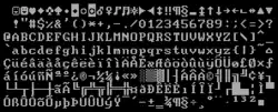 ![]() Code page 850 character set with 9×14 glyphs, as usually rendered by Enhanced Graphics Array (EGA) | |