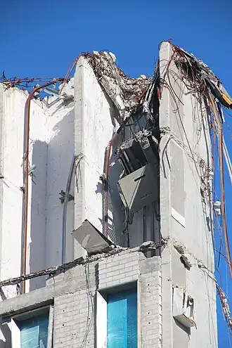 On February 27, 2014, Tower 5 of the Space Building was demolished.[4][5] On September 23, 2014, what remained of the apartment building was completely demolished after Tower 5 was demolished.[7][8]
