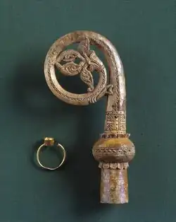 Callixtus made similar reciprocal promises regarding the empire in Italy.[36] He agreed to the presence of the emperor or his officials at the elections and granted the emperor the right to ajudge in the case of disputed outcomes on episcopal advice[15]—as long as they had been held peacefully and without simony[36]—which had officially been the case ever since precedent had been set by the London Accord of 1107.[29][note 3] This right to judge was constrained by an assurance that he would support the majority vote among electors, and further that he would take the advice of his other bishops before doing so.[38] The emperor was also allowed to perform a separate ceremony in which he would invest bishops and abbots with their regalia, a sceptre representing the imperial lands associated with their episcopal see.[39][note 4] This clause also contained a "cryptic" condition that once the elect had been so endowed, the new bishop "should do what he ought to do according to imperial rights".[36] In the German imperial lands this was to take place prior to the bishop-elect's consecration;[39] elsewhere in the empire—Burgundy and Italy,[36] exempting the Papal States[27]—within six months of the ceremony.[39] The differentiating between the German portion of the Empire and the rest was of particular importance to Calixtus as the papacy had traditionally felt threatened more from it in the peninsular than the broader Empire.[40] Finally, the pope granted "true peace" on the emperor and all those who had supported him.[36] Calixtus had effectively overturned wholesale the strategy he had pursued during the Mouzon negotiation;[34] episcopal investitures in Germany were to take place with very little substantive change in ceremony,[22] while temporal involvement remained, only replacing investiture with homage,[41] although the word itself—hominium—was studiously avoided.[42] Adalbert, from whom Calixtus first received news of the final concordat, emphasized that it still had to be approved in Rome; this suggests, argues Stroll, that the Archbishop—and probably the papal legation as a whole—were against making concessions to the emperor,[29] and probably wanted Calixtus to disown the agreement.[22] Adalbert believed the agreement would make it easier for the Emperor to legalise intimidation of episcopal electors, writing that "through the opportunity of [the emperor's] presence, the Church of God must undergo the same slavery as before, or an even more oppressive one".[43]