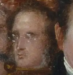 In 1840, Moorsom attended the World Anti-Slavery Convention in London. It was held at the Freemasons Hall on 12 June 1840[8] The meeting was attended by leading abolitionists from around the world. The portrait above is taken from the commemorative painting where he can be seen behind the head of Joseph Sturge of the Anti-Slavery International, who organised the conference. The painting hangs in the National Portrait Gallery.