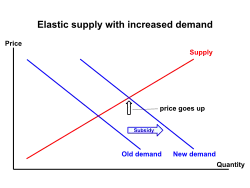 Elastic supply with increased demand. Under these market conditions, when demand is increased due to subsidy, both the quantity provided and the price increase.