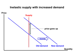 Inelastic supply with increased demand. Under these market conditions, when demand is increased due to subsidy, the quantity provided remains limited and the price increases more than it would have if the supply were elastic.