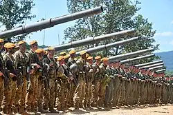 As tensions rose, Croatia declared independence on 25 June 1991. However, the full implementation of the declaration only came into effect after a three-month moratorium on the decision on 8 October 1991.[107][108] In the meantime, tensions escalated into overt war when the Serbian-controlled Yugoslav People's Army (JNA) and various Serb paramilitary groups attacked Croatia.[109]