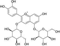 Cyanidin-3,5-O-diglucoside, also known as cyanin, is an anthocyanin. It is the 3,5-O-diglucoside of cyanidin.