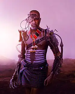 Scholars that rely upon a strict, technical description of a cyborg, often going by Norbert Wiener's cybernetic theory and Manfred E. Clynes and Nathan S. Kline's first use of the term, would likely argue that most cyborg artists do not qualify to be considered cyborgs.[92] Scholars considering a more flexible description of cyborgs may argue it incorporates more than cybernetics.[93] Others may speak of defining subcategories, or specialized cyborg types, that qualify different levels of cyborg at which technology influences an individual. This may range from technological instruments being external, temporary, and removable to being fully integrated and permanent.[94] Nonetheless, cyborg artists are artists. Being so, it can be expected for them to incorporate the cyborg idea rather than a strict, technical representation of the term,[95] seeing how their work will sometimes revolve around other purposes outside of cyborgism.[92]