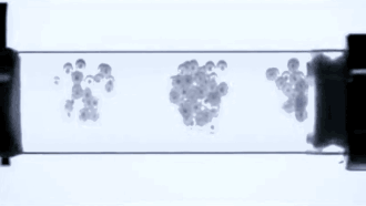 Spherical soap bubbles confined in a cylindrical glass tube.