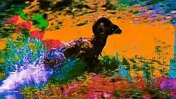 Still from footage of a bighorn sheep from El hombre y la Tierra, superimposed on the animated short Radical Updates by Andrew Benson.