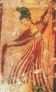A Tang dynasty dancer from a mural unearthed in Xi'an dancing with a shawl