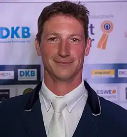 Daniel Deusser (German: Daniel Deußer; born 13 August 1981)[1] is a German equestrian and Olympic bronze medalist. He represented his country at the 2016 Summer Olympics. He is nicknamed "Double D."[2] His career reached a higher level starting from 2002, when he was part of team Germany at the Young Rider European Championships. With his top partner Killer Queen, he was selected to represent Germany at Rio de Janeiro Olympic Games in 2016. Daniel Deusser is the current world number five (March 2022).[3]