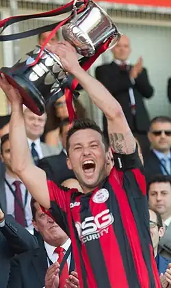![]() Duarte lifting the Rock Cup after the 2014 Rock Cup final | |||