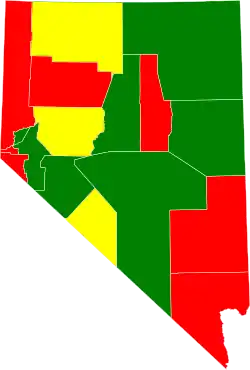 Sex work in Nevada is regulated in the ten counties and five cities that permit it.[80] Prostitutes are regulated by a patchwork of both state and local laws that address a number of different areas. Zoning laws in Nevada prohibit brothels from being located near a school, house of worship, or main road.[82] Brothels are also barred from advertising on public roads or in districts where prostitution is illegal. The county licenses for brothels are very expensive, to the point of being a significant item in county revenue. Other existing regulations mandate STI testing before prostitutes are hired, and weekly testing once they are employed. Sex workers with HIV are also prohibited from working. Sex workers who continue to work after testing HIV-positive can be punished with two to ten years in prison or a $10,000 fine.[80]