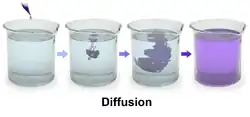 - Molecular diffusion, diffusion of molecules from more dense to less dense areas