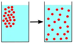 In the phenomenological approach, diffusion is the movement of a substance from a region of high concentration to a region of low concentration without bulk motion. According to Fick's laws, the diffusion flux is proportional to the negative gradient of concentrations. It goes from regions of higher concentration to regions of lower concentration. Sometime later, various generalizations of Fick's laws were developed in the frame of thermodynamics and non-equilibrium thermodynamics.[4]