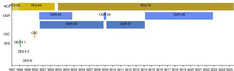 | Timeline of projects hosted by distributed.net, as of July 2025 |