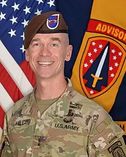 Donn H. Hill is a retired United States Army major general who last served as commanding general of the Security Force Assistance Command from 2022 to 2024.[1][2] He most recently served as the deputy commanding general for education of the United States Army Combined Arms Center, provost of the Army University and deputy commandant of the United States Army Command and General Staff College from 2020 to 2022. He previously served as commanding general of the 2nd Security Force Assistance Brigade.[3][4][5]