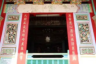 Pillar duilian outside the Nantian Temple (瓦硐南天廟) in Penghu, reading the eulogy of Guan Yu, to whom the temple is devoted.