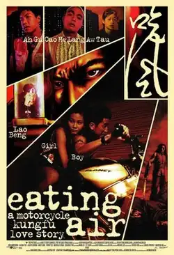 Eating Air (Chinese: 吃風) is a 1999 Singaporean action romantic drama film directed by Kelvin Tong and Jasmine Ng, starring Benjamin Heng and Alvina Toh as two disaffected teenagers who are in love and about their days of being wild and crazy.[2][3][4] Billed as "a motorcycle kung-fu love story", the directorial feature debut of Tong and Ng has since been considered a cult classic among the local film community.[5][6]
