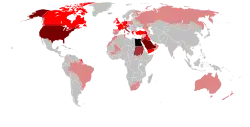 A sizable Egyptian diaspora did not begin to form until well into the 1980s, when political and economic conditions began driving Egyptians out of the country in significant numbers. Today, the diaspora numbers nearly 4 million (2006 est).[44] Generally, those who emigrate to the United States and western European countries tend to do so permanently, with 93% and 55.5% of Egyptians (respectively) settling in the new country. On the other hand, Egyptians migrating to Arab countries almost always only go there with the intention of returning to Egypt; virtually none settle in the new country on a permanent basis.[45]