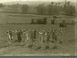 Dalcroze began his career as a pedagogue at the Geneva Conservatory in 1892, where he taught harmony and solfège. It was in his solfège courses that he began testing many of his influential and revolutionary pedagogical ideas. Between 1903 and 1910, Dalcroze had begun giving public presentations of his method.[3] In 1910, with the help of German industrialist Wolf Dohrn, Dalcroze founded a school at Hellerau, outside Dresden, dedicated to the teaching of his method. Many musicians flocked to Hellerau, among them Prince Serge Wolkonsky, Vera Alvang (Griner), Valeria Cratina, Jelle Troelstra (son of Pieter Jelles Troelstra), Inga and Ragna Jacobi, Albert Jeanneret (Le Corbusier's brother), Jeanne de Salzmann, Mariam Ramberg, Anita Berber, Gertrude Price Wollner,[4] and Placido de Montelio. With the outbreak of World War I in 1914, the school was abandoned. After the Second World War, his ideas were taken up as "music and movement" in British schools.