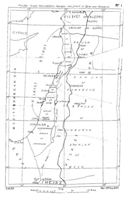 Ottoman Sanjaks covering the areas of Palestine, Transjordan, and Syria