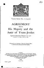 70. ^ Agreement between his Britannic Majesty and His Highness the Amir of Trans-Jordan, February 1928