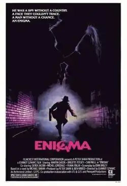 Enigma is a 1982 Cold War spy film directed by Jeannot Szwarc, from a screenplay by John Briley, starring Martin Sheen, Sam Neill, Brigitte Fossey, Derek Jacobi, Michael Lonsdale, Frank Finlay and Kevin McNally.[3] Based on Michael Barak's 1978 novel Enigma Sacrifice, the film centers on a CIA agent who tries to infiltrate Soviet intelligence in order to stop a murderous plot.[4]