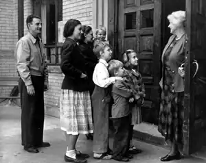 The demographics of the West Town community began to transition at the turn of the 20th century as Italian and Polish immigrants populated the area near and around Erie Chapel. By 1915, Erie Chapel consisted of three staff members and an annual budget of $6,400 (roughly $150,000 when adjusted for inflation), at which point it incorporated and renamed itself Erie Chapel Institute. One notable staff member, Florence Towne, served as the kindergarten teacher and girls group leader from 1914 to 1926, at which time she was appointed head resident.[4] Towne's faith, generosity and resilience earned her a reputation far beyond the walls of Erie House, prompting Reader's Digest to label her the "Angel of the Alleys." She served families at Erie House from 1914 until her death in 1951, living on-site in staff quarters at 1347 W. Erie St. for the last 25 years of her life.