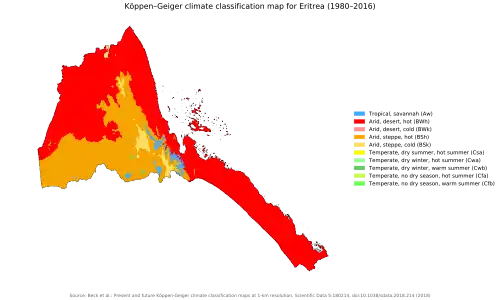 Based on temperature variations, Eritrea can be broadly divided into three major climate zones: the temperate zone, subtropical climate zone, and tropical climate zone.[118]