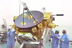The first medium-class mission was selected from proposals formulated by ESA in 1982, prior to Horizon 2000.[89] A Titan Probe that would piggyback on the American Cassini spacecraft was proposed by a group of American and European scientists,[89] and was selected alongside the American-European LYMAN ultraviolet and QUASAT very-long-baseline interferometry observatories as finalists.[90][91][92] The European-Soviet Vesta multiple-flyby minor planet mission and GRASP gamma-ray observatory competed,[93][94] but were rejected by the AWG and SSWG.[92][95] After budget cuts resulting from the Challenger disaster forced NASA to retract its support for LYMAN and QUASAT,[96] the Titan Probe was selected by the SPC in November 1988,[92] and renamed Huygens in honor of Christiaan Huygens, who discovered Titan in 1655, per the suggestion of Swiss astronomers at the meeting.[97] In the competition for the second medium-class mission in June 1989, a consortium of American and European institutions proposed INTEGRAL, a gamma-ray observatory that combined GRASP with the American Nuclear Astrophysics Explorer (NAE),[98] which had lost selection for NASA's Explorers Programme that year.[99] NASA supported the proposal, and the Russian Academy of Sciences later offered launch aboard a Proton launch vehicle in exchange for observation time on the mission.[100][101] Despite concerns about NASA's commitment to the mission and their funding sources,[102] INTEGRAL was selected by the SPC in June 1993, with NASA contributing Deep Space Network services and a spectrometer.[103][104] In response, INTEGRAL was selected by NASA as an Explorers mission without competition.[105] This, along with concerns about the sensitivity of the spectrometer designed for the mission, proved controversial among NASA's advisory bodies.[105][106] In September 1994, ESA and NASA resolved to end NASA's involvement with the spectrometer, citing a lack of financial support.[107] CNES promptly assumed the financial burden, and led the design and manufacturing of a new spectrometer.[108]