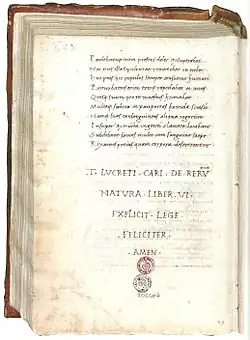 The explicit (from Latin explicitus est, "it is unrolled", as applied to scrolls) of a text or document is either a final note indicating the end of the text and often including information about its place, date and authorship or else the final few words of the text itself. In the first case, it is similar to a colophon but always appearing at the end of the text. In the second case, it corresponds to the incipit, the first few words of a text.[1]