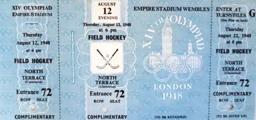 Ticket for the 1948 Summer Olympics Hockey Match at the Empire Stadium Wembley
