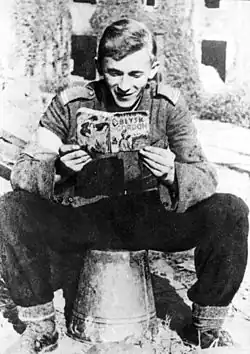 A young corporal of the Home Army reading a Polish edition of one of Flash Gordon Big Little Book ("Błysk Gordon - Królowa Błękitnej Magii") during the Warsaw Uprising of 1944