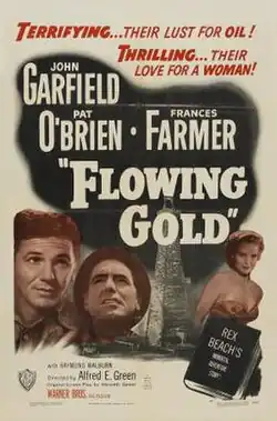 Flowing Gold is a 1940 American adventure film starring John Garfield, Frances Farmer, and Pat O'Brien. It was based on the novel of the same name by Rex Beach. The novel had already been adapted to film in 1924 but that was in silent form. The 1940 film with audible dialogue is set in the American oilfields and the title refers to oil.