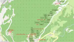 The Fort de Dailly is the largest part of a fortress complex extending the length of the Saint-Maurice valley, with coordinated fields of artillery fire and interlocking defenses.[1] While most of these positions are detached from one another and are self-sufficient installations, Dailly and its neighbor Savatan are connected. The Fort de Savatan adjoins Dailly at a lower level, facing to the north, and is connected by an inclined funicular in the mountain.[2] The forts at Dailly and Savatan were completed in 1894 and became the central elements of Fortress Saint-Maurice.[3] They were progressively expanded and upgraded through the twentieth century. Over time, Dailly was equipped with an example of virtually every Swiss artillery piece and construction method, from rock-cut artillery galleries to revolving gun turrets.[4]