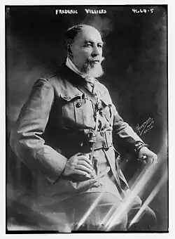 Frederic Villiers (23 April 1851 – 5 April 1922) was a British war artist and war correspondent.[1][2][3] Along with William Simpson and Melton Prior, Villiers was one of the most notable 'special' artists of the later 19th century. He may have been the model for the Kipling war-artist character, Dick Heldar in The Light that Failed.