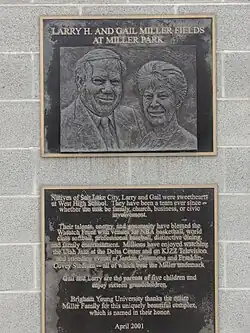 In 2000, Brigham Young University (BYU) announced that the Millers had made a significant financial contribution towards the new 4,000-seat, $7 million baseball and softball complex. Built on campus, the project was named Miller Park, and the softball field was christened Gail Miller Field, and the baseball field is called Larry H. Miller Field.[60]