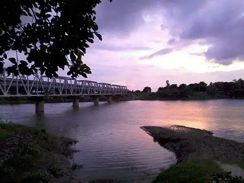 Trains cross the Gangarampur Railway Bridge over Punarbhaba River near Gangarampur railway station.[2]