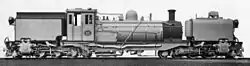 The Tasmanian Railways stipulated two features that were not in Herbert Garratt's original concept. The first was a compound configuration in which two high-pressure cylinders were on the rear engine unit and a pipe led to two larger, low-pressure cylinders on the front engine unit. The second was to have the cylinders facing inwards, which would reduce the distances between both the main steam pipe and the high-pressure cylinders and between the high-pressure and low-pressure cylinders.[13] The latter feature made the locomotive unnecessarily complicated and placed the high-pressure cylinders directly underneath the cab, making it uncomfortably hot for the crew on the rare days when Tasmania's West Coast Range was warm. Only one more Garratt locomotive was produced with compound propulsion (by Beyer, Peacock & Co. in 1927 for Burma Railways).[14] The company built no more Garratts with inward-facing cylinders, but two Garratts operated by the Southern Fuegian tourist railway at Ushuaia in Argentina, largely based on the K class, have that feature.[8][note 3]