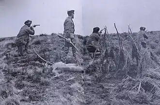 Estancieros and gold prospectors launched a campaign of extermination against the Native Selknam peoples, Argentina, in the 19th century; in the image Julius Popper targeting Indigenous peoples, 1886