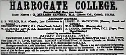 30. ^ "Educational. Harrogate Ladies' College". Methodist Times. 26 May 1898. p. 5 col.3. Retrieved 9 April 2025 – via British Newspaper Archive.