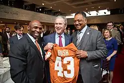 In April 1989, Bush arranged for a group of investors to purchase a controlling interest of Major League Baseball's Texas Rangers for $89 million and invested $500,000 himself to start. He then was managing general partner for five years.[44] He actively led the team's projects and regularly attended its games, often choosing to sit in the open stands with fans.[45] Bush's sale of his shares in the Rangers in 1998 brought him over $15 million from his initial $800,000 investment.[46]