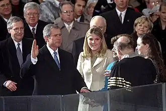 Bush takes the oath of office administered by Chief Justice William Rehnquist at the Capitol, January 20, 2001.