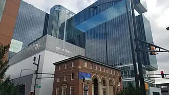 Technology Square, also known as "Tech Square", is located across the Downtown Connector and embedded in the city east of East Campus.[77] Opened in August 2003 at a cost of $179 million, the district was built over run-down neighborhoods and has sparked a revitalization of the entire Midtown area.[78][79][80] Connected by the recently renovated Fifth Street Bridge, it is a pedestrian-friendly area comprising Georgia Tech facilities and retail locations.[78][81] One complex contains the College of Business Building, holding classrooms and office space for the Scheller College of Business, as well as the Georgia Tech Hotel and Conference Center and the Georgia Tech Global Learning Center.[82]